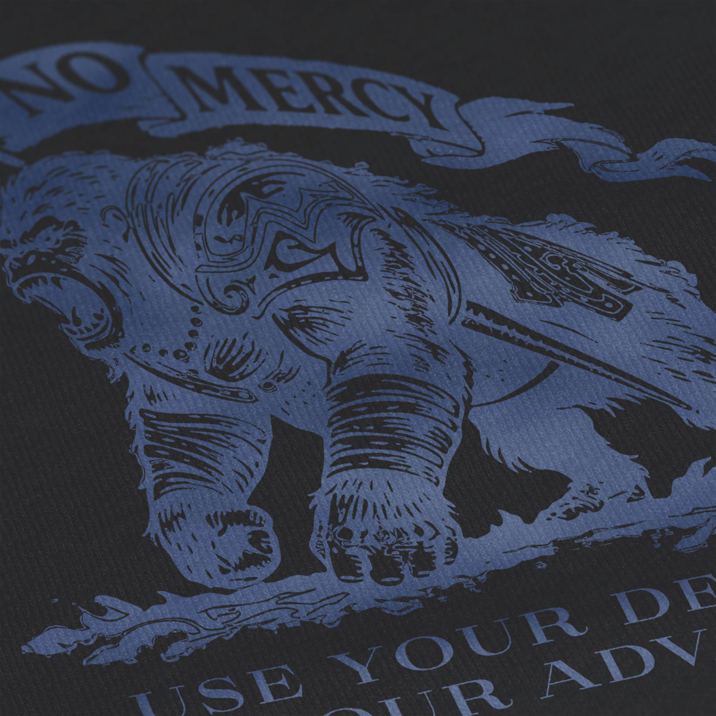 Set against a deep black base, the back features the powerful No Mercy gorilla graphic, a symbol of raw strength, controlled aggression, and relentless forward movement. Above it sits the No Mercy banner, and beneath it the message that defines the mindset: “Use Your Demons To Your Advantage.”