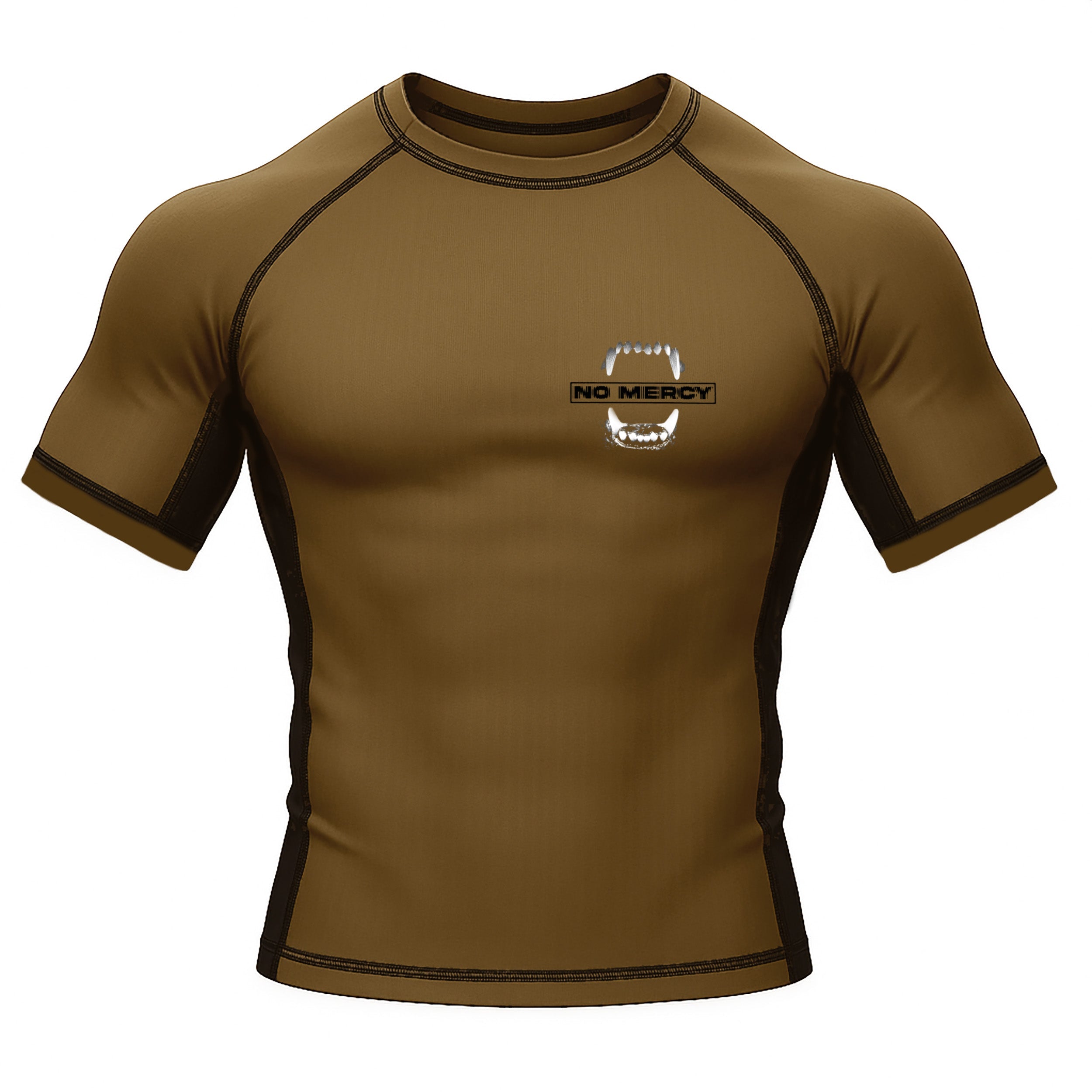 The front keeps it sharp and minimal, featuring the No Mercy logo on the left chest, bitten through by the same menacing teeth — a design built for fighters who return every ounce of pressure.