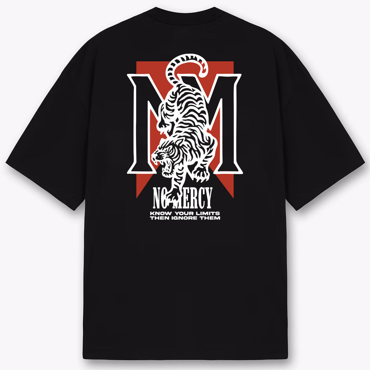 The No Mercy Know Your Limits Tee is a statement of mindset — a reminder that boundaries exist only to be broken. On the back, bold lettering declares “Know Your Limits — And Then Ignore Them”, set within the same striking design language that defines No Mercy: clean, powerful, and unflinching.