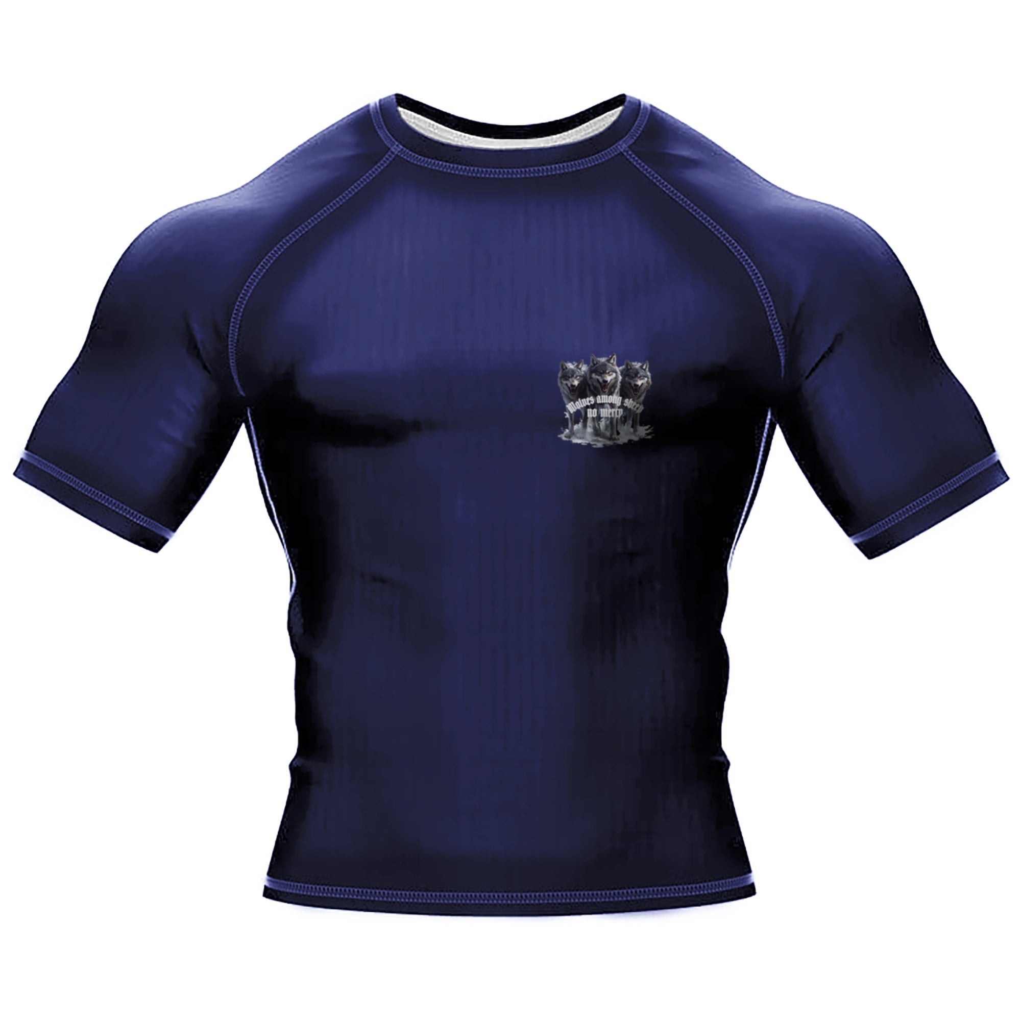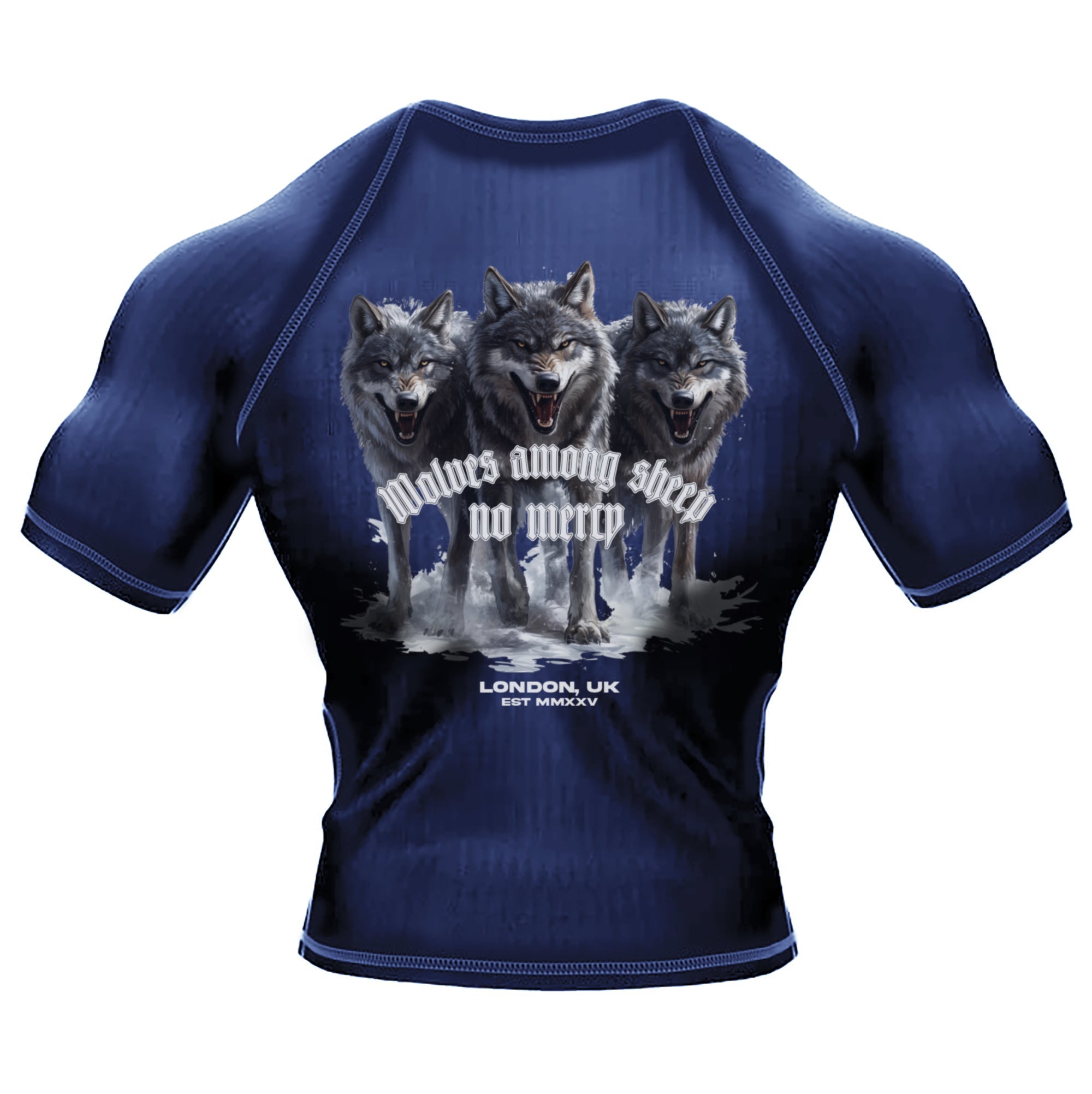 Introducing the No Mercy Jiu-Jitsu Rash Guard in Navy, built for those who lead the pack and stand apart from the rest. Made from high-performance, moisture-wicking compression fabric, this rash guard delivers superior breathability, flexibility, and muscle support, keeping you at your best during intense training sessions. The design features a fierce wolf pack graphic on the back, symbolising strength and unity, while the bold words “Wolves Amongst Sheep” are prominently displayed on both the front and back, reflecting the mindset of those who rise above the ordinary. With reinforced stitching and sublimated graphics that won’t crack, fade, or peel, this rash guard is built for the warriors who train with No Mercy.