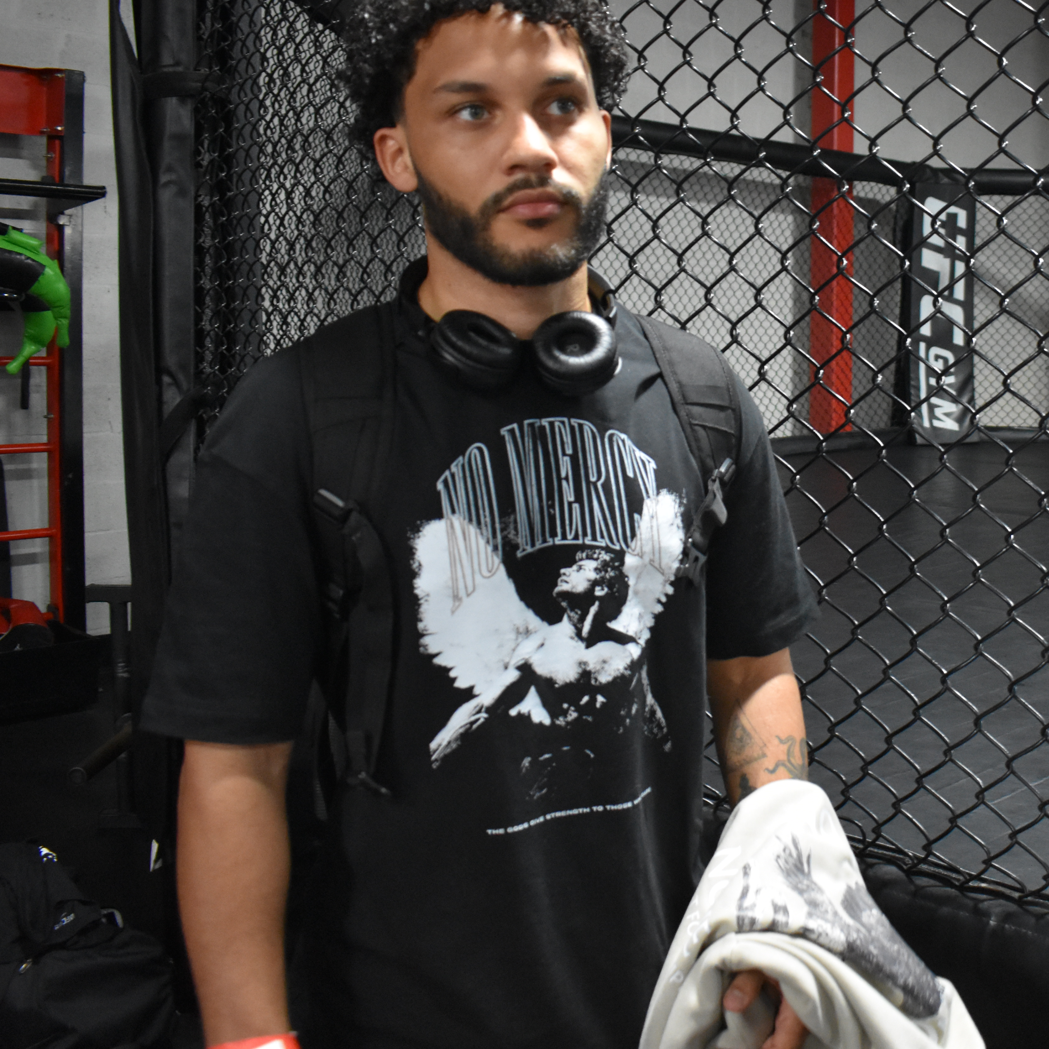 Introducing the No Mercy Oversized T-Shirt in Jet Black, crafted from ultra-soft heavyweight cotton for a premium feel and lasting durability. Designed in our signature oversized fit, this tee offers a relaxed silhouette with a ribbed crew neck for everyday comfort. The front features a striking angel graphic, symbolising resilience and power, with the bold No Mercy statement and The gods give strength to those who dare printed beneath.